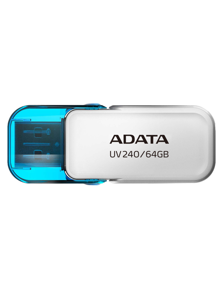 ADATA UV240. Capacity: 64 GB, Device interface: USB Type-A, USB version: 2.0. Form factor: Cap. Weight: 0.247 oz (7 g). Product color: Blue, White