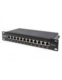 DIGITUS CAT 6A PATCH PANEL, SHIELDED,12-PORT LABEL FIELD, 1U, 10" RACK MOUNT, BLACK RAL 9005