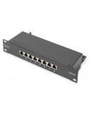 DIGITUS CAT 6A PATCH PANEL, SHIELDED,8-PORT 1U, 10" RACK MOUNT, BLACK RAL 9005