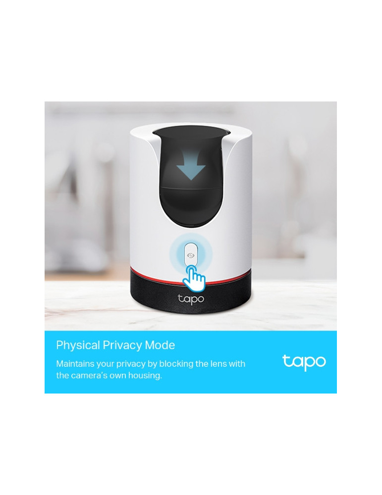 TP-Link Tapo C225. Malli: IP-turvakamera, Tuettu sijoitus: Sisätila, Yhteysteknologia: Langaton. Kiinnitystyyppi: Vastaanotto, Tuotteen väri: musta, Valkoinen, Kotelo: Tower. Näkökentän kulma: 360°, Kiertokulma: 360°, Kallistuskulma: 0 - 149°. Anturin tyyppi: Starlight, Optisen sensorin koko: 25,4 / 3 mm (1 / 3"), Kameran tehollinen erottelutarkkuus: 1440 pikseliä. Kiinteä polttoväli: 4 mm