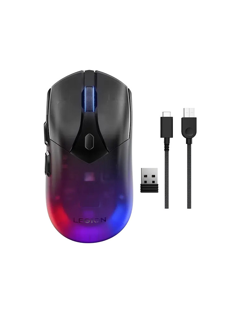 Lenovo Legion M410, Molempikätinen, Optinen, RF Wireless + USB Type-C, 16000 DPI, Musta, Läpinäkyvä