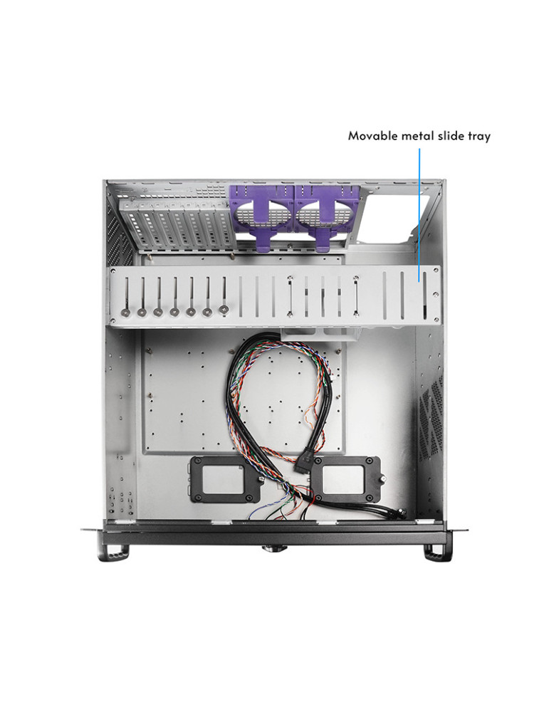 Chieftec UNC-409S-AIO-OP. Formfaktor: Ställning, Modell: Server, Produktens färg: Svart. Frontfläktdiametrar som stöds: 120,240,360 mm, Bakre fläktdiametrar som stöds: 80 mm, Storlek som stöds för främre radiator: 120,240,360 mm. Hårddiskstorlek som stöds: 2.5,3.5". Bredd: 480 mm, Djup: 427 mm, Höjd: 176,8 mm