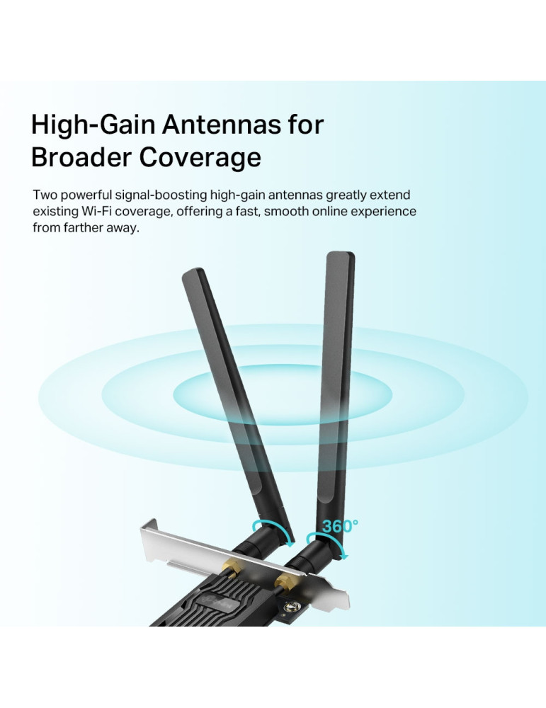 TP-Link Archer TX20E, Intern, Trådlös, PCI Express, WLAN / Bluetooth, 1800 Mbit/s, Svart