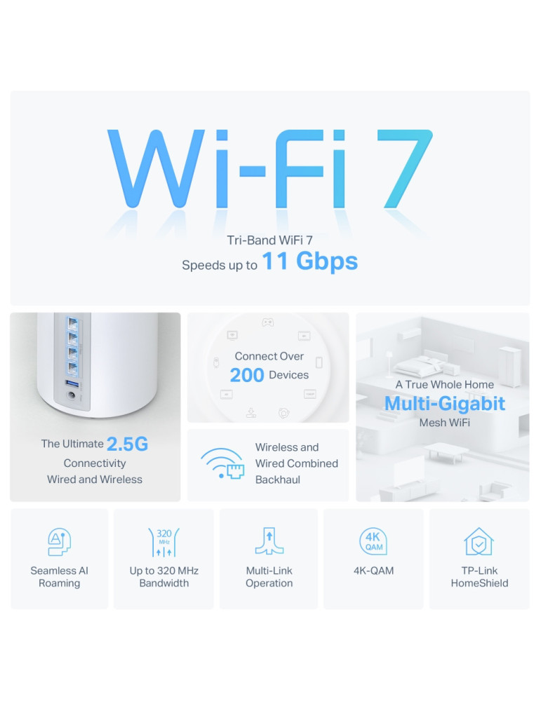 TP-Link Deco BE65, Vit, Intern, Mesh-system, Triband (2,4 GHz/5 GHz/6 GHz), Wi-Fi 7 (802.11be), 11000 Mbit/s