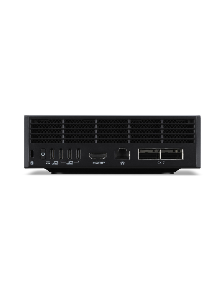 Acer Veriton VGN100. Processor: GB10. Internminne: 128 GB, Typ av internminne: LPDDR5x-SDRAM. Total lagringskapacitet: 4 TB, Lagringsmedia: SSD. Ombord grafikkort modell: NVIDIA Blackwell. Wi-Fi. Installerat operativsystem: DGX OS, Operativsystemets systemarkitektur: 64-bit. Strömförsörjning: 240 W. Chassityp: Mini PC. Produkttyp: Arbetsstation. Vikt: 1,2 kg. Produktens färg: Svart, Grå
